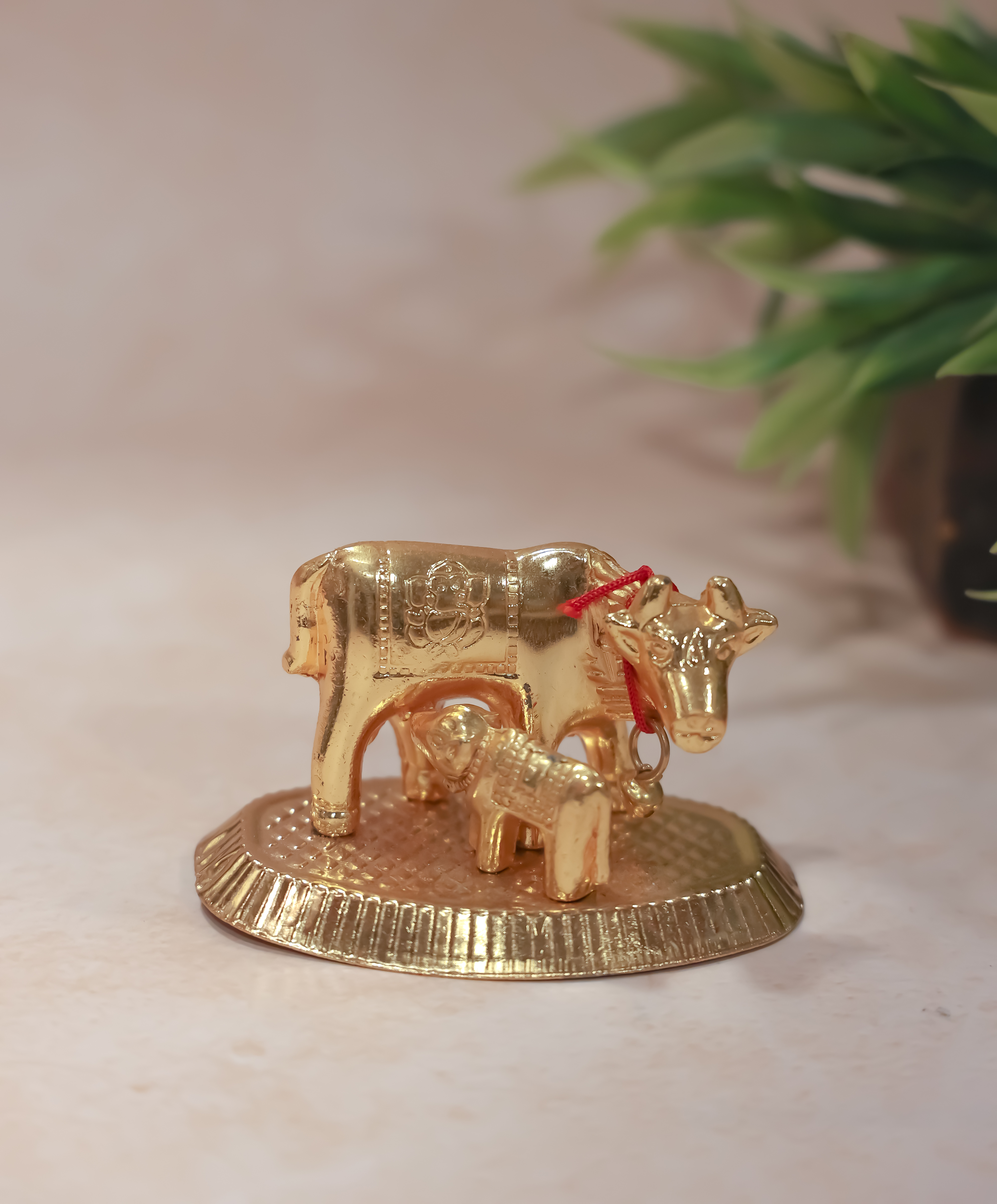 Kamadhenu Cow and calf-Gold finish